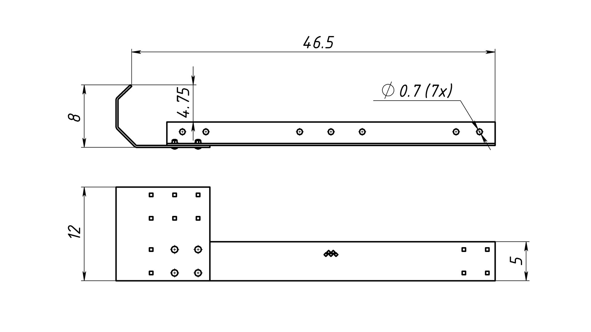 1/4" thick steel angle 5" high x 3" deep with 12" high wrap plate.